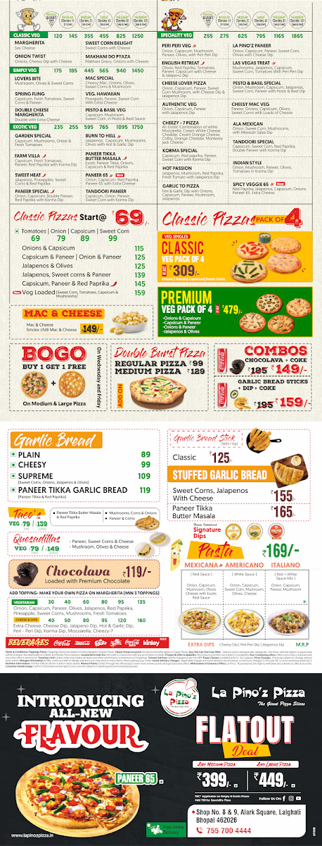 Introducing the menu of La Pino'z Pizza - Lal Ghati, a culinary haven for pizza lovers in Bhopal. Located at Alark Square, this charming outlet promises an unforgettable dining experience. The highlights of their menu include perfectly baked pizzas with crispy crusts and gooey cheese, hailed by customers like Ankit Yadav for their flavor-packed offerings.